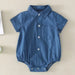 With its simple and stylish solid denim design, this bodysuit is perfect for both baby boys and girls. Whether you're dressing up for a family outing or just running errands, this versatile jumpsuit fits seamlessly into any occasion and offers a cute, neutral look.