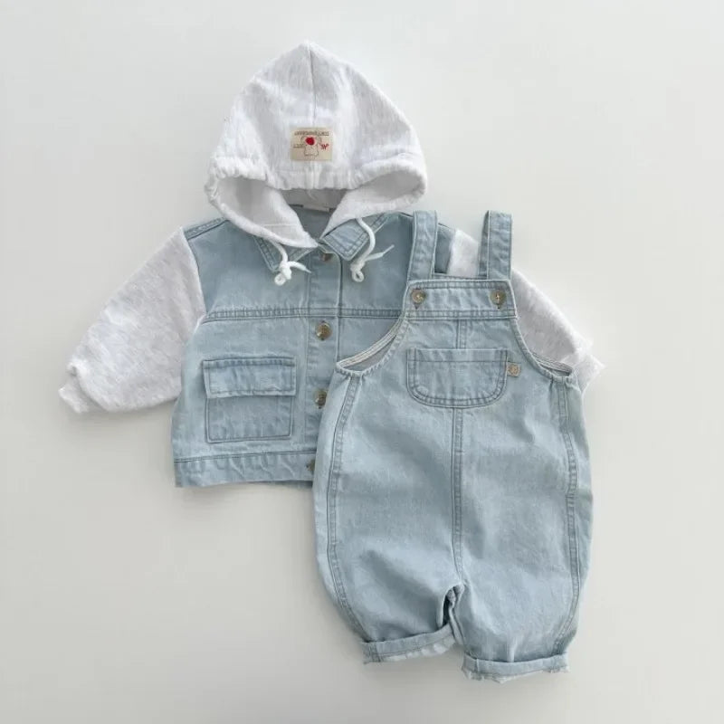 The timeless Korean-style design of these denim overalls is both trendy and classic. Whether you pair them with a cute shirt or a cozy sweater, your little one will always look fashionable. This versatile outfit is perfect for both boys and girls and is ideal for any autumn outing.