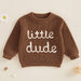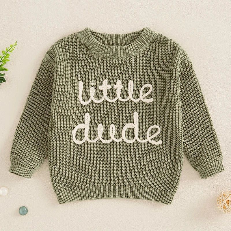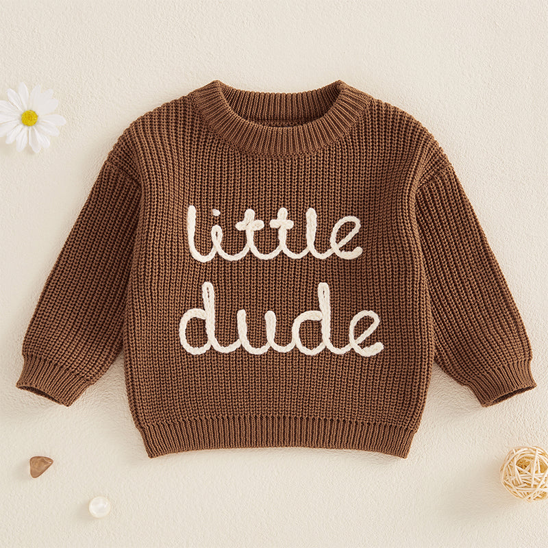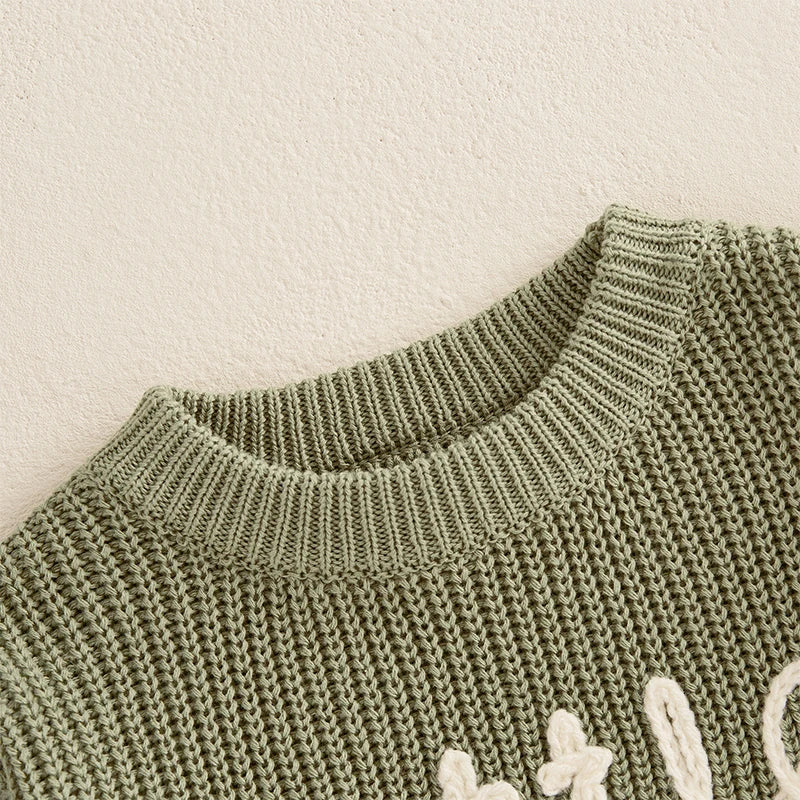 The letter embroidery adds a playful touch, making this sweater perfect for casual outings, playdates, or simply lounging at home.
