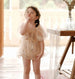 This adorable romper combines a classic princess look with modern comfort. Featuring stretch pleated mesh and delicate floral accents, it’s designed to make your little one the star of birthday parties, family photoshoots, or any special gathering. The soft beige color adds sophistication, while the stretchy, breathable fabric ensures your baby feels as good as she looks.