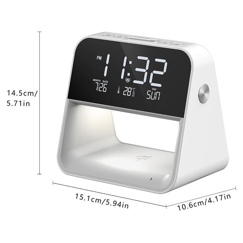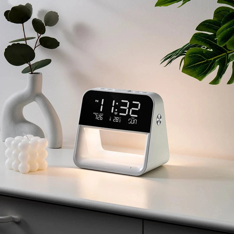 The sleek geometric design of this lamp clock complements modern bedroom, office, or living room decor. Its minimalist style, combined with its multi-functional features, makes it a versatile and stylish addition to any space.