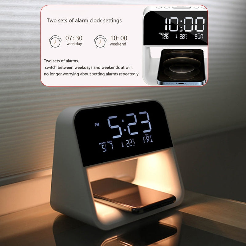 The 1pc New Bedroom Bedside Lamp Clock offers a perfect blend of functionality and style. With its soothing night light, wireless charging feature, and convenient snooze function, this clock is designed to enhance your home or office environment. Ideal for both practical use and creating a warm, inviting atmosphere, it’s a must-have for your bedroom or workspace.