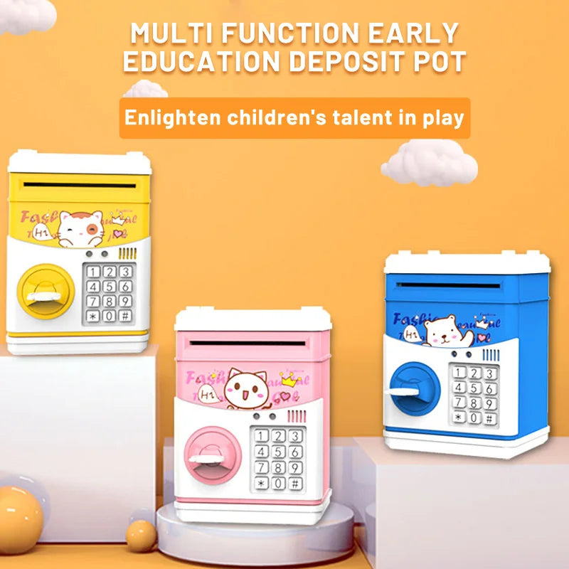 Introduce your child to the importance of saving with this creative cartoon piggy bank! Designed like a mini ATM, it combines fun, security, and learning, featuring music, stories, and interactive functions. With its sturdy construction and adorable design, this piggy bank makes saving money an exciting and enriching experience for kids.
