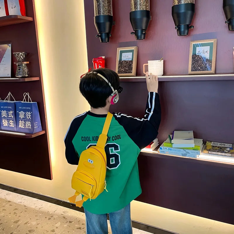 This duck-shaped bag can be worn in multiple ways, including as a shoulder bag, chest bag, or fanny pack, providing flexibility and comfort for kids on the go.