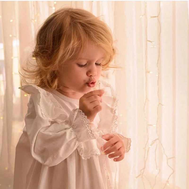 Transform bedtime into a magical experience with this adorable Lolita princess sleepshirt. Made from soft cotton fabric and designed with lace ruffles, this Victorian-style nightgown ensures both comfort and elegance, making it the perfect choice for your child's nighttime routine.