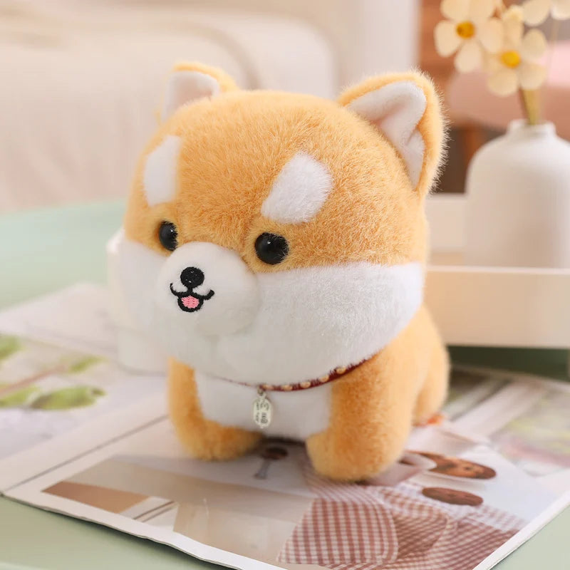 The plush toy features an adorable Shiba Inu with a playful and expressive face, capturing the charm of the beloved breed. Its cute design makes it a delightful addition to any room or collection.