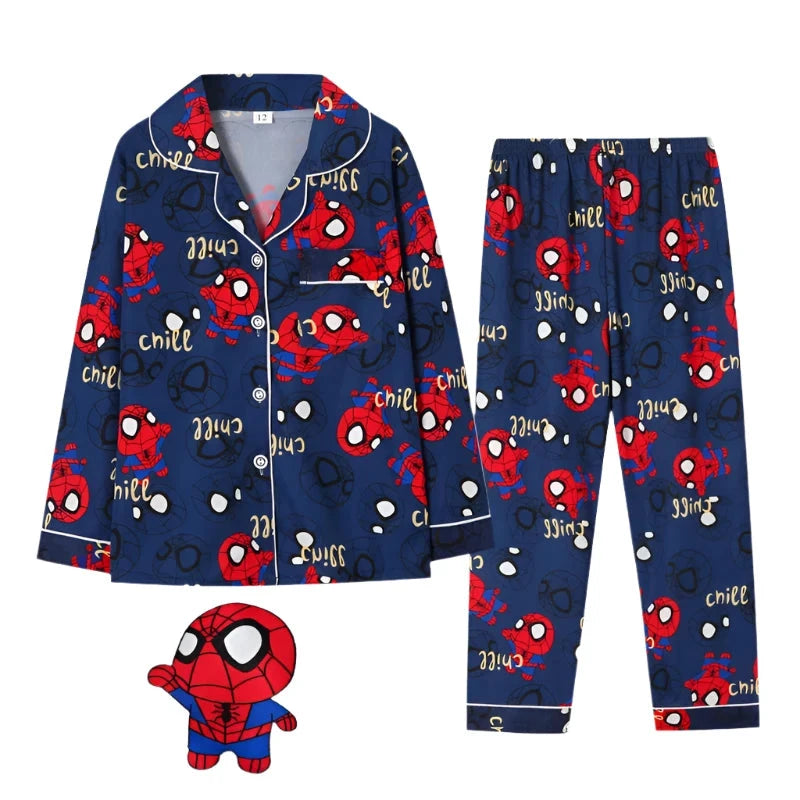 This Cute Kids Pajama Set is the perfect blend of comfort and style for children aged 7-13. Featuring an adorable cartoon print, this set includes a loose-fitting pajama top with a turn-down collar and matching pants. Made from soft, breathable polyester, this pajama set ensures your child stays comfortable all night long. Whether it’s for sleeping or lounging at home, this set offers a cozy and stylish choice for autumn.