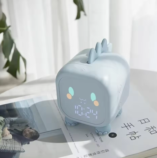 This cute dinosaur-themed alarm clock is not only an effective timepiece but also a comforting companion for your little one. Featuring a soft night light with customizable settings and unique sunrise and sunset modes, it’s perfect for helping kids adjust to a consistent bedtime routine. The energy-efficient design, snooze function, and adjustable sound settings make this clock an ideal gift for children, giving parents peace of mind while ensuring a fun and engaging sleep environment.