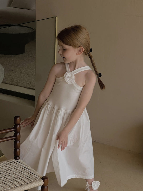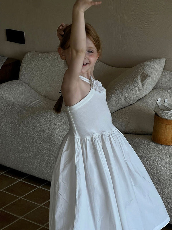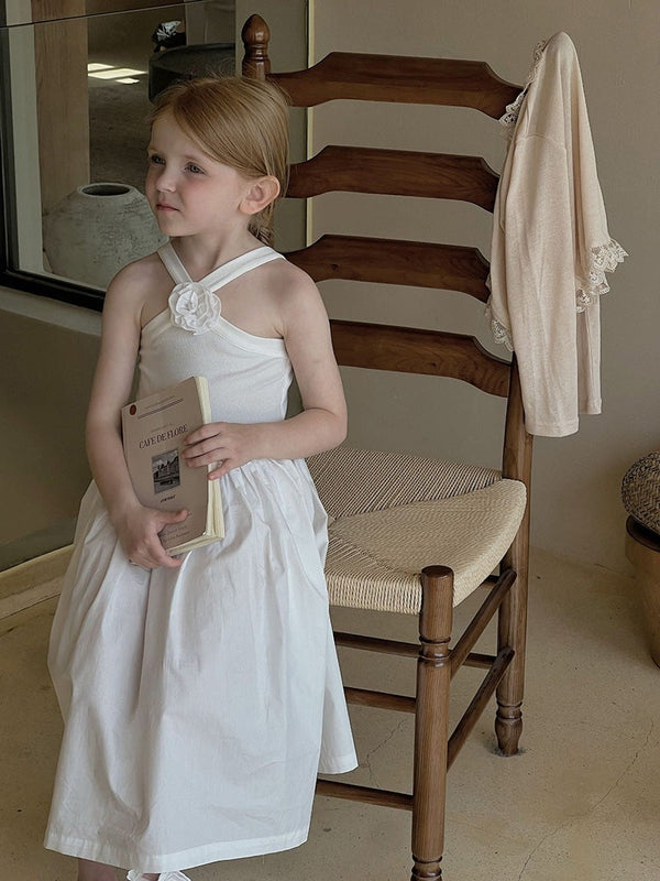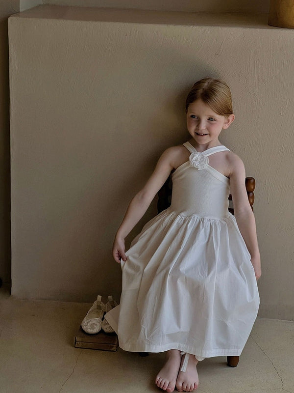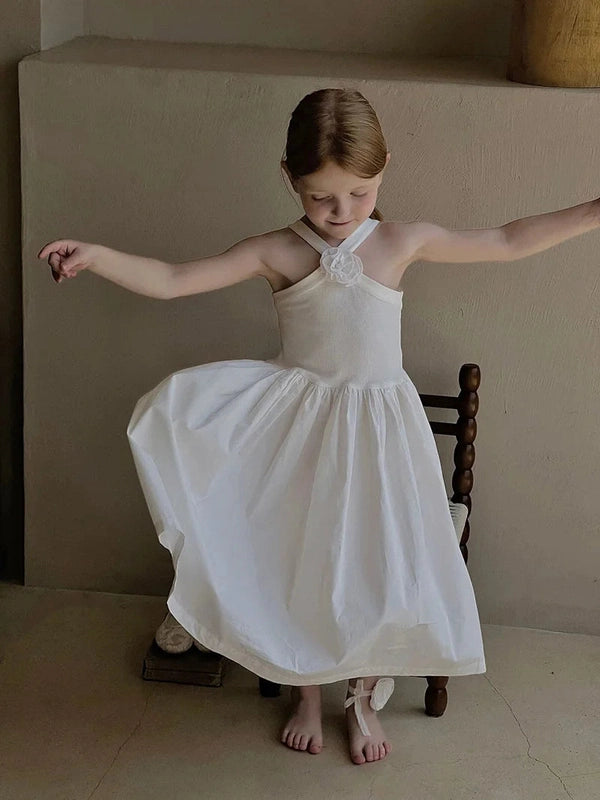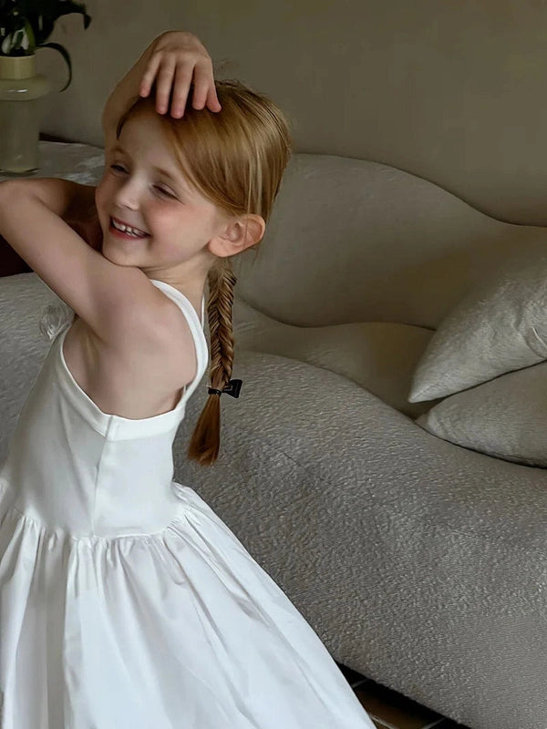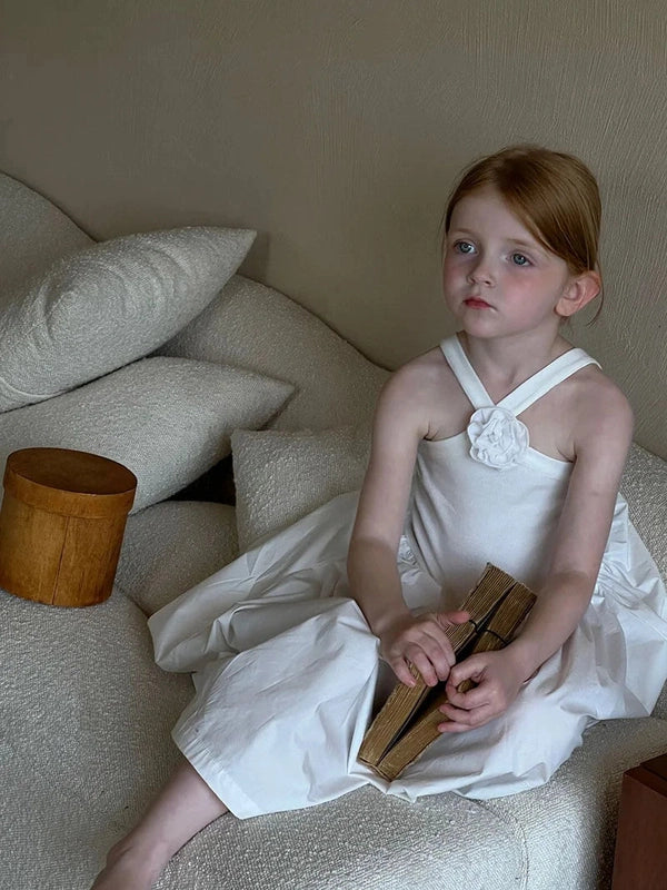 This charming spaghetti strap sundress features a camellia flower design that embodies timeless beauty and modern comfort. Made from breathable cotton, the dress is perfect for birthday parties, summer outings, or family gatherings. Its elastic straps and flowy silhouette ensure a comfortable fit, while the crisp white color adds a touch of sophistication to your little one’s wardrobe.