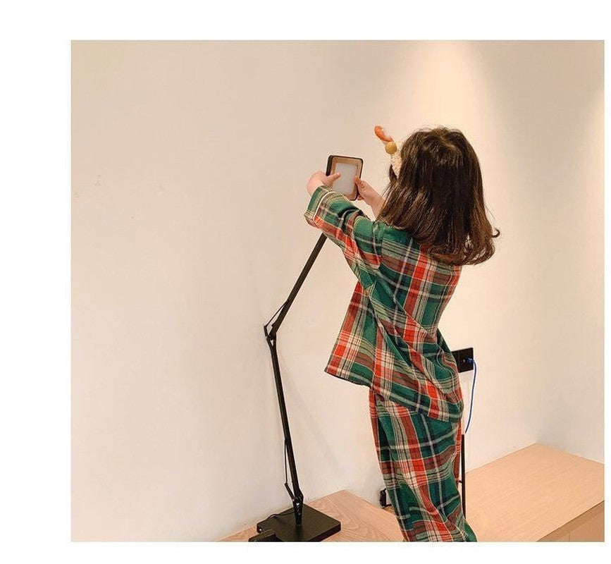 These pajamas are machine washable and designed to withstand frequent use. The durable cotton fabric retains its softness and vibrant plaid pattern even after multiple washes, making it a reliable choice for daily wear.