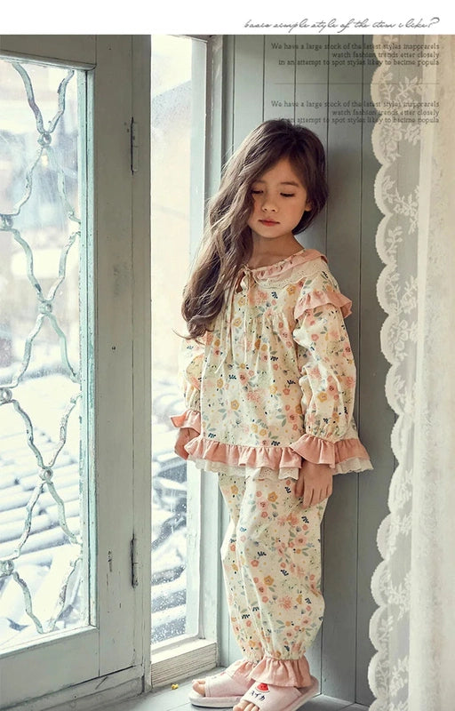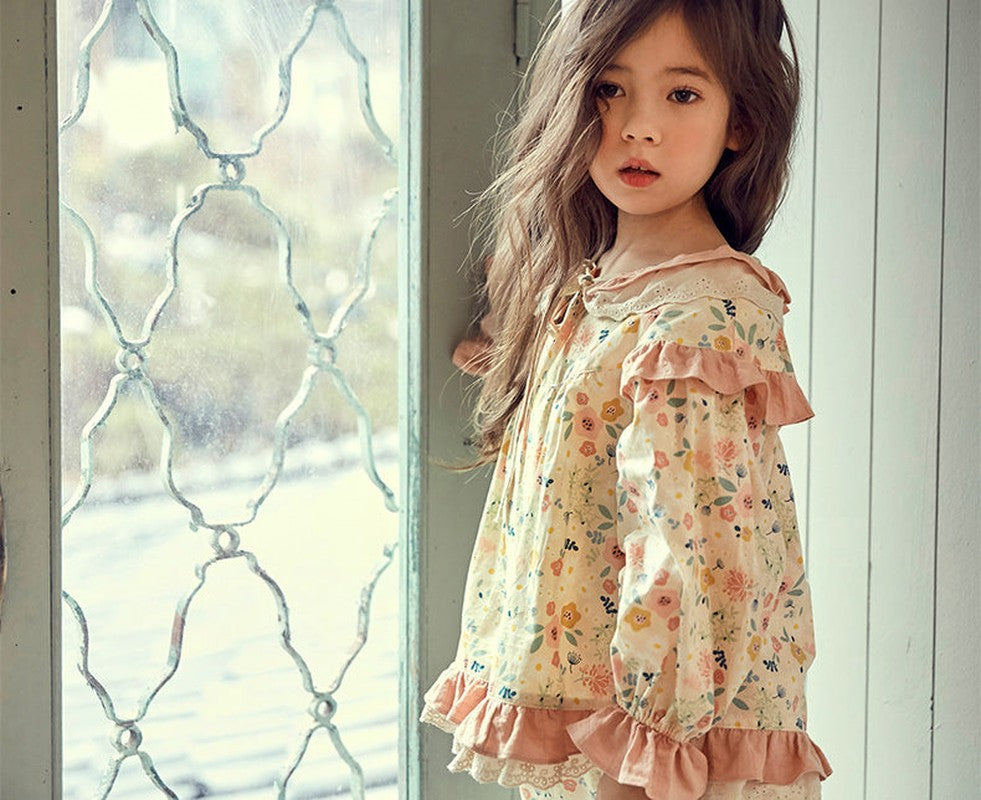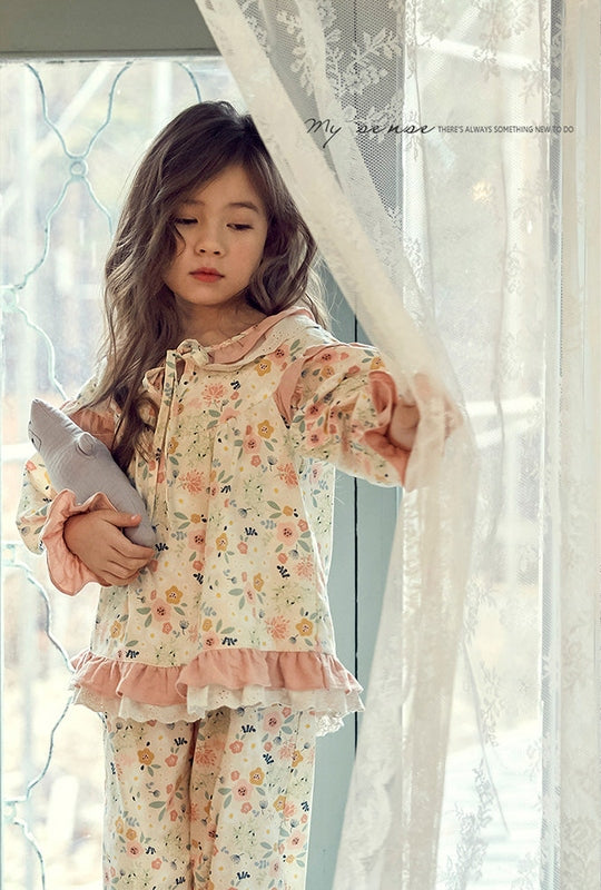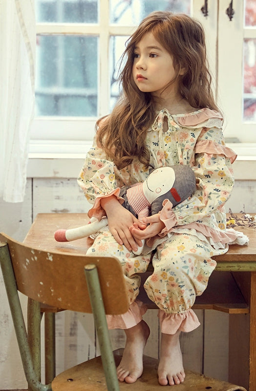 The floral pattern combined with Lolita-style details gives this pajama set a charming, nostalgic appeal. Whether it’s bedtime or playtime, the vintage-inspired design makes your child feel like a little princess as they drift off to sleep or lounge in comfort.