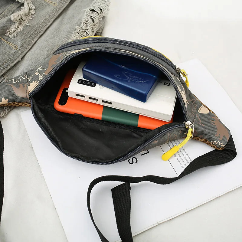 This Kids Dinosaur Print Crossbody Bag is a versatile and practical accessory designed for boys and girls. Featuring a fun dinosaur design, high-quality canvas material, and a spacious interior, it’s perfect for carrying essentials during travel, school, or outings. The adjustable strap allows it to be worn as a sling bag, fanny pack, or chest pouch, making it a stylish and functional choice for children.