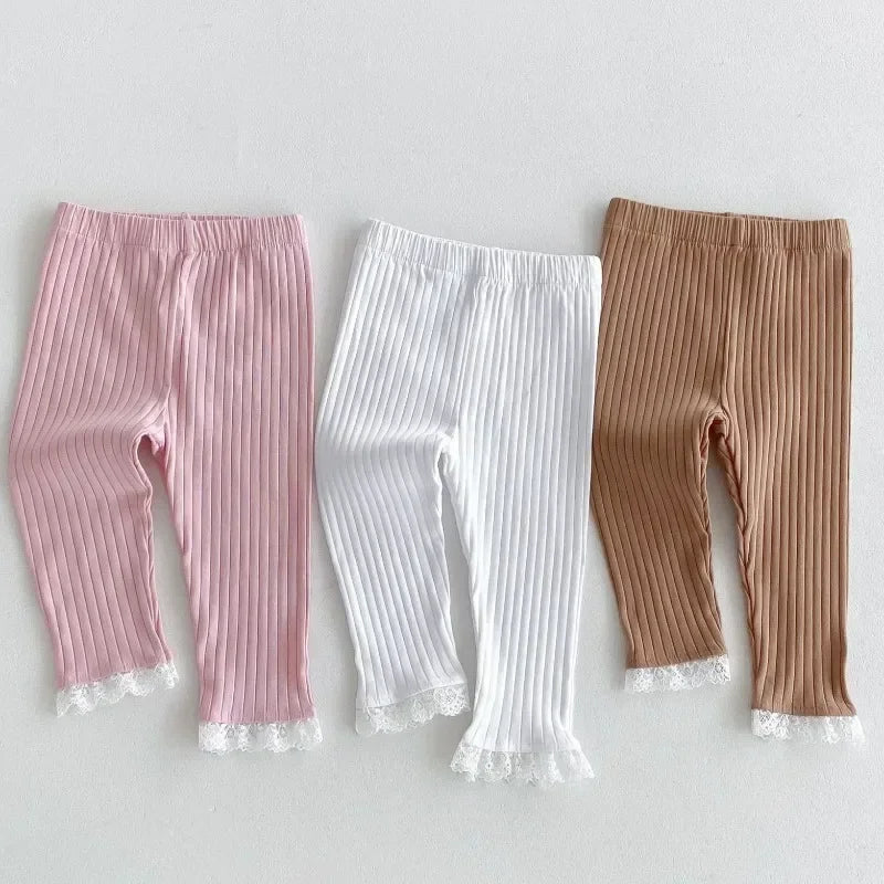 The lace trim on these pants adds a touch of elegance, transforming a simple pair of leggings into a stylish outfit. The cute lace details make them perfect for both everyday wear and special occasions, ensuring your child looks fashionable without compromising on comfort.