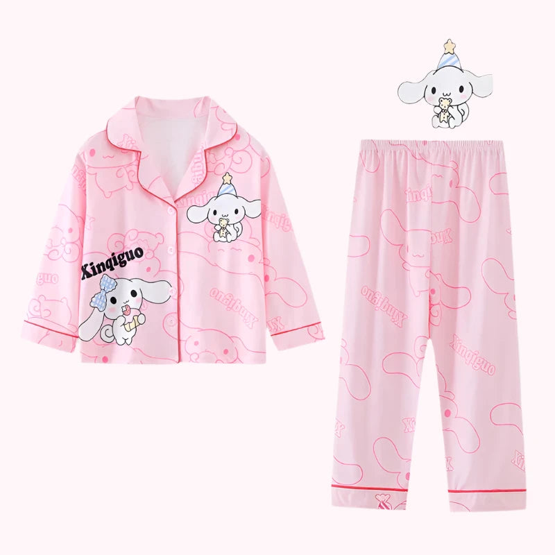 This two-piece kids' pajama set is designed for ultimate comfort and fun. With a soft flannel fabric, turn-down collar, and a playful cartoon print, it's perfect for lounging, sleeping, or enjoying quiet moments at home. Ideal for autumn and winter, this pajama set will keep your child warm and cozy while looking cute all season long.