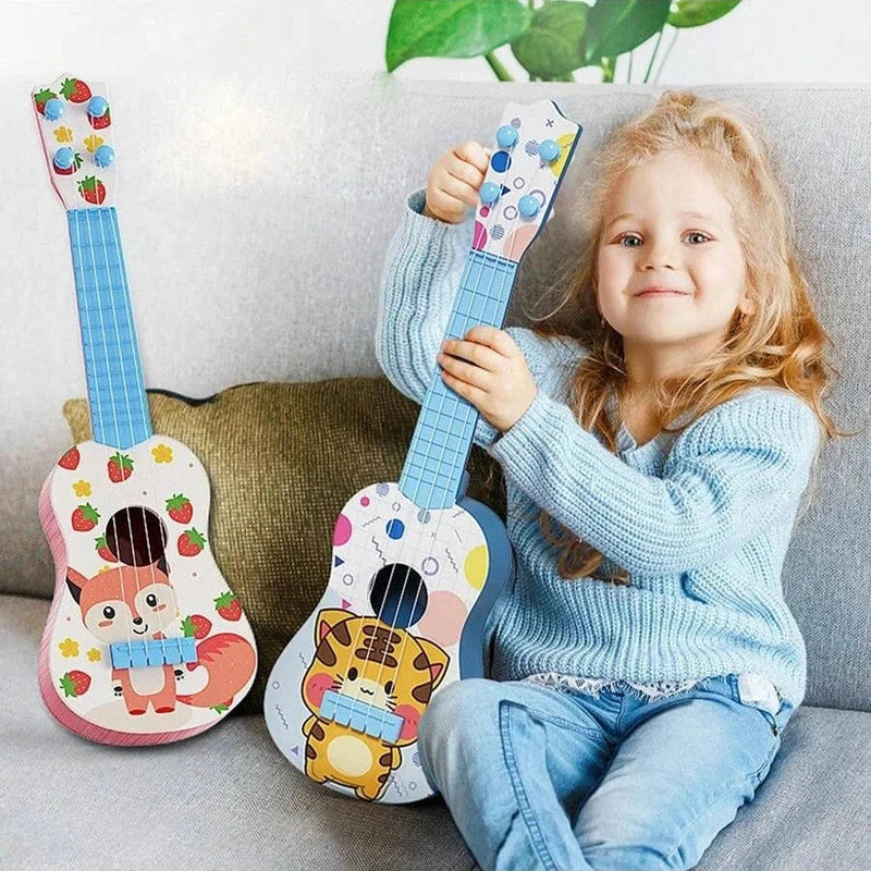 This toy ukulele is made from premium, child-safe materials and features 4 realistic strings, providing an authentic music experience. Its compact size and lightweight design make it easy for little hands to strum and play, while the cartoon image design adds fun and excitement. Whether it's for playtime or music education, this ukulele helps kids develop early musical skills.