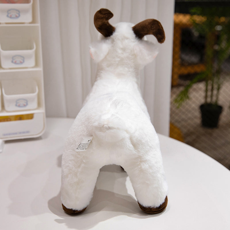 The plush toy features realistic detailing, including textured fur, expressive eyes, and charming goat-like features. Its lifelike appearance sparks creativity and imagination, making it a standout toy or decorative piece.
