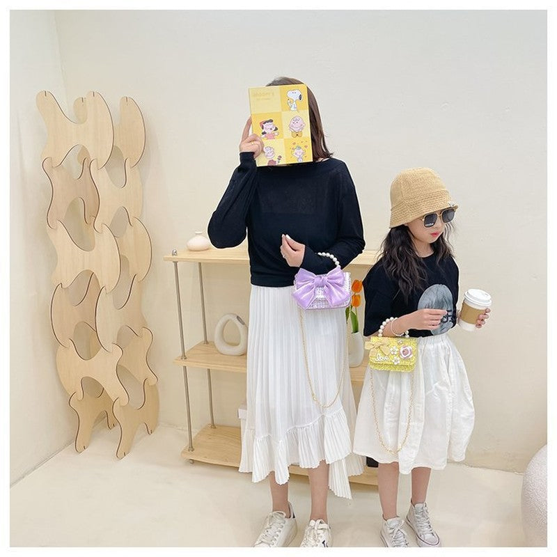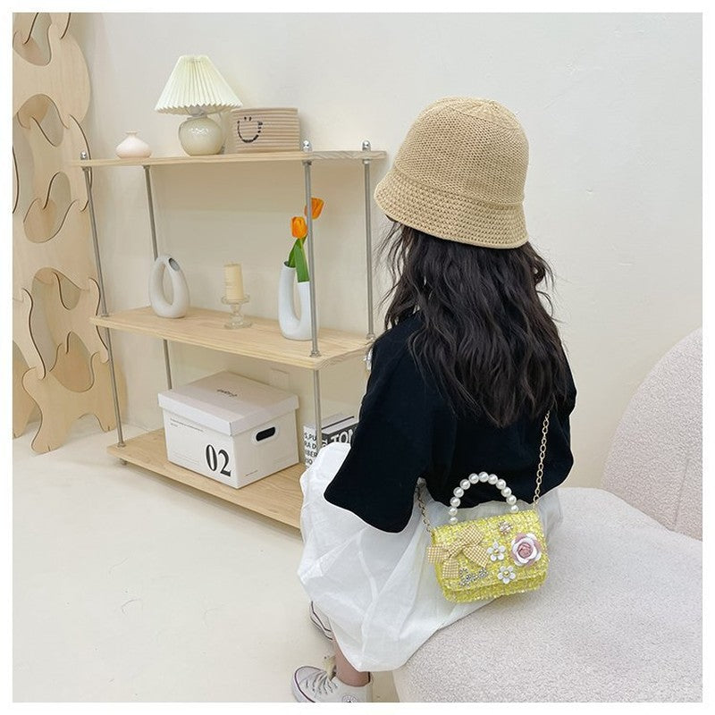 The elegant combination of pearls and the sleek, compact size makes this bag perfect for special occasions or everyday use. Whether it's a family gathering, birthday party, or a simple playdate, this bag is sure to make your child feel extra special.