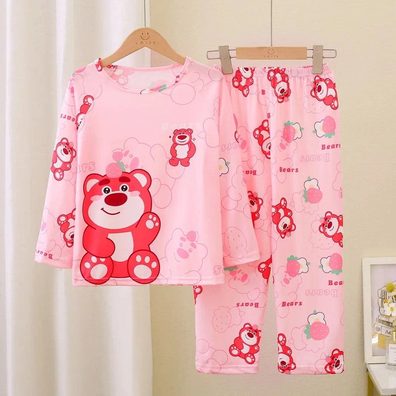 With its delightful cartoon print, this pajama set will bring joy to your child's bedtime routine. The playful design is sure to become a favorite, making nighttime something to look forward to.