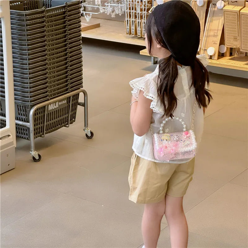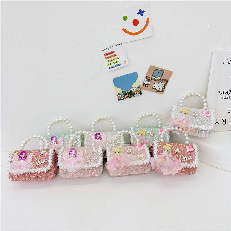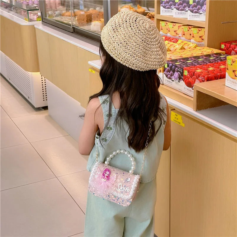 This Sequin Lace Children’s Shoulder Bag is the ideal accessory for baby girls who love style and elegance. Featuring a pearl handle, adjustable strap, and sparkling sequin details, this mini handbag is designed for carrying small essentials while complementing any outfit. Whether for parties, playdates, or everyday use, this bag is a perfect choice for young fashionistas.