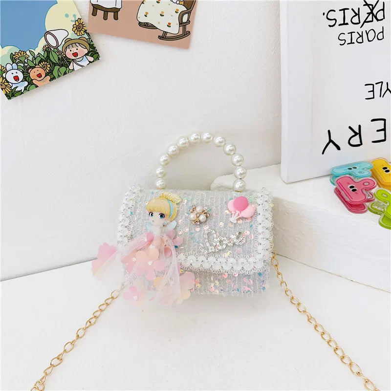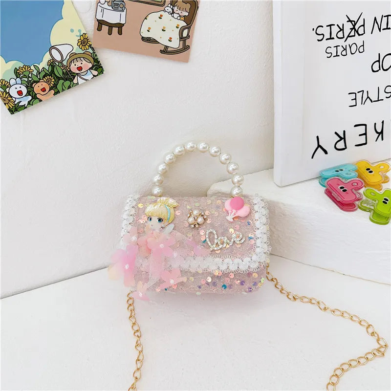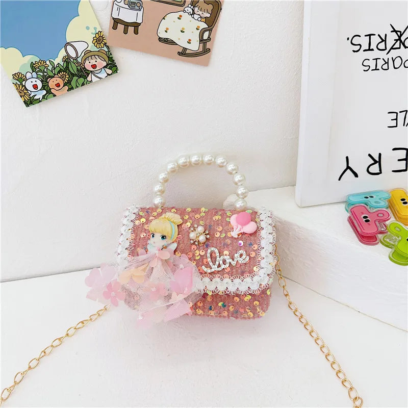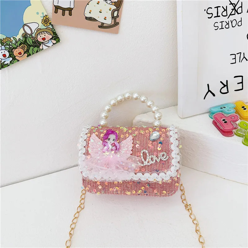 Adorned with sequins and delicate lace, this bag adds a touch of glamour and fun to any ensemble. It’s the perfect accessory for little girls who love a bit of sparkle in their look.
