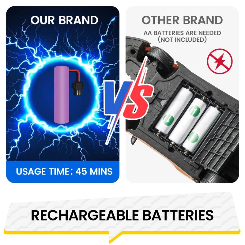 Thanks to 2.4GHz technology, this RC toy offers smooth control, even when multiple cars are racing at once. Enjoy uninterrupted fun as each car operates independently without interference, ensuring a seamless and exciting racing experience.