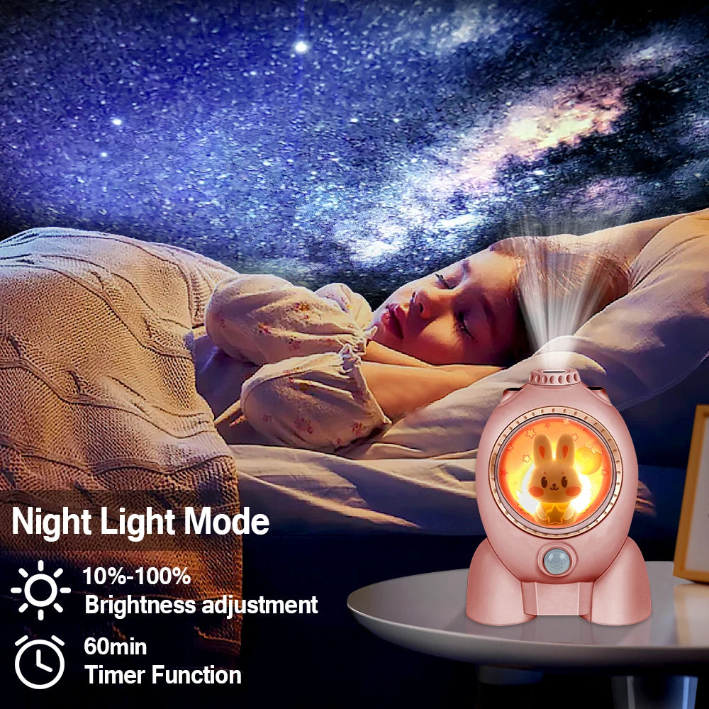 With 36 different projection scenes, the Rocket Galaxy Night Light encourages your child's imagination to explore the universe. From animals to planets, your child can experience diverse themes that will spark their curiosity and learning.