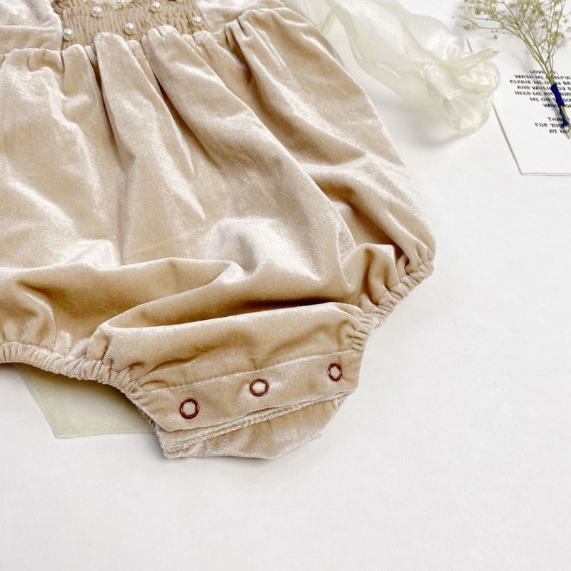 Crafted from high-quality velvet, this romper offers a soft, plush feel that’s gentle on your baby’s skin. The rich fabric adds a sophisticated touch, making it the perfect choice for special occasions. Whether you're celebrating a birthday or simply dressing up for a family event, this velvet romper brings both comfort and elegance.