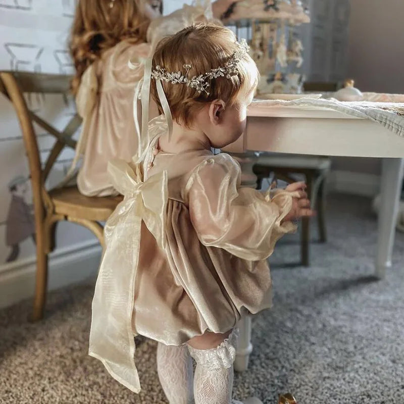 Whether it’s your child’s first birthday or a family photoshoot, this royal-style romper is the perfect outfit to make her feel like a princess. The stylish design and luxurious velvet fabric make it ideal for capturing precious moments. It’s the perfect blend of adorable and sophisticated, creating the perfect outfit for any milestone event.