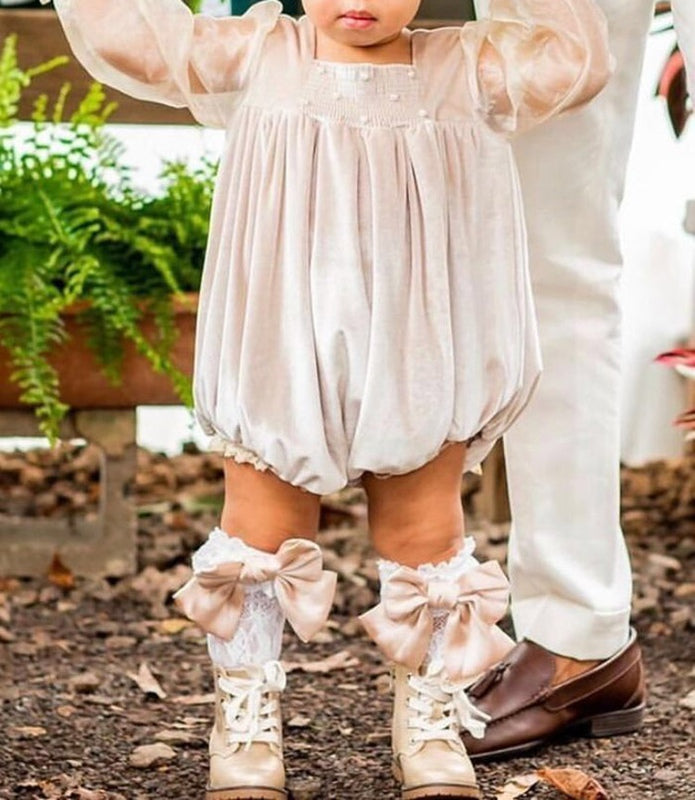 Designed with your baby’s comfort in mind, this romper offers a snug yet flexible fit that allows for easy movement. The soft velvet fabric ensures your little one is comfortable while still looking fabulous. Perfect for play or posing for pictures, this romper allows for full mobility while maintaining a beautiful, polished look.