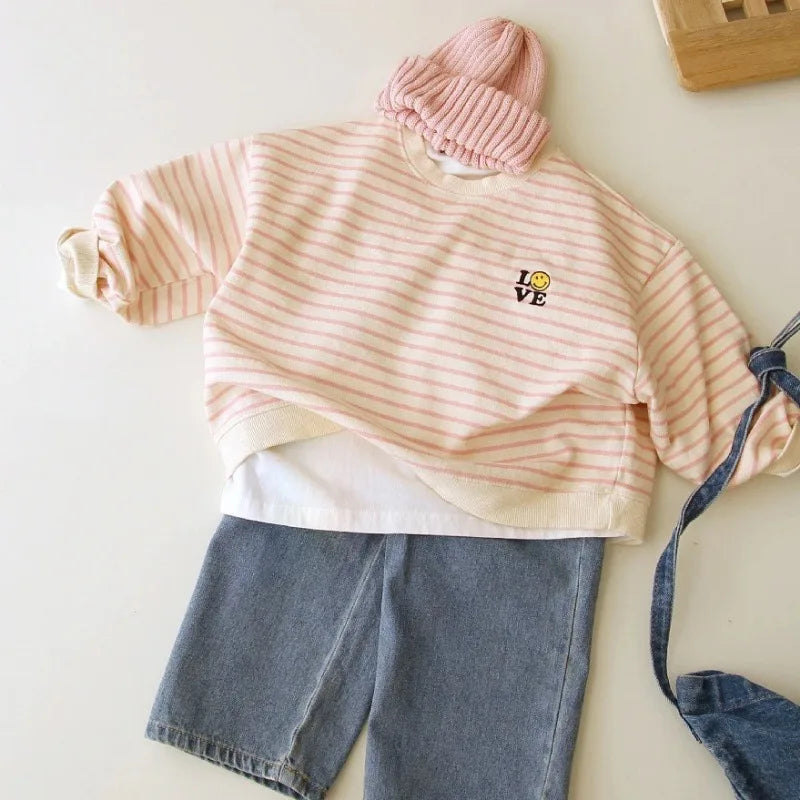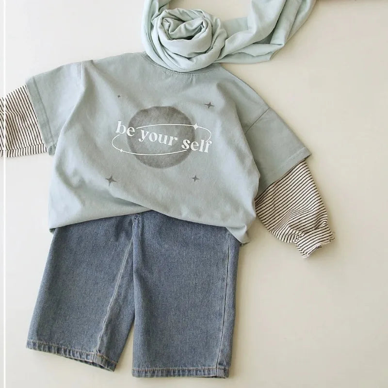 These Korean-style jeans feature a simple yet stylish solid pattern that can easily be paired with any top. The high-waisted elastic waistband makes them easy to pull on and off, ensuring your child can dress themselves with minimal fuss. They’ll love the freedom of these easy-to-wear pants.