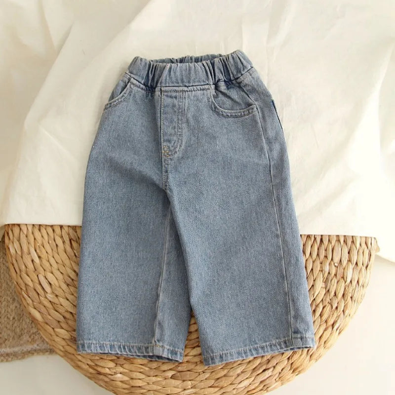 The loose fit design allows for plenty of room for movement, making these jeans ideal for kids who love to run, jump, and play. Whether it's a playground adventure or a casual outing, these wide-leg pants will give your child the flexibility they need without compromising on style.
