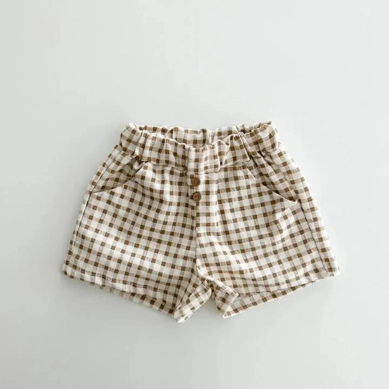The classic plaid pattern adds a touch of style to these casual shorts, giving your child a fashionable look while still offering the practicality needed for summer fun. These shorts can be paired with various tops, making them an essential addition to your child’s seasonal wardrobe.