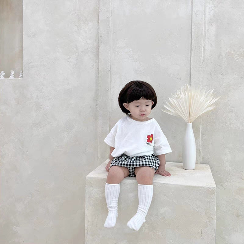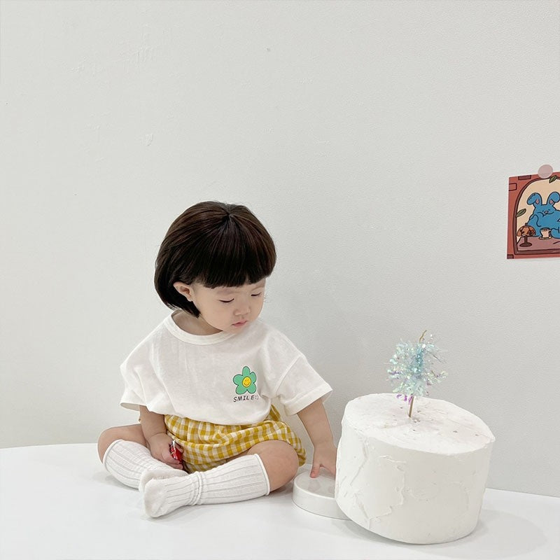 The plaid shorts add a fun, casual vibe to the outfit. With an elastic waistband, they are easy to put on and provide a secure, flexible fit. The shorts offer plenty of room for movement, allowing your child to play, run, and jump without feeling restricted.