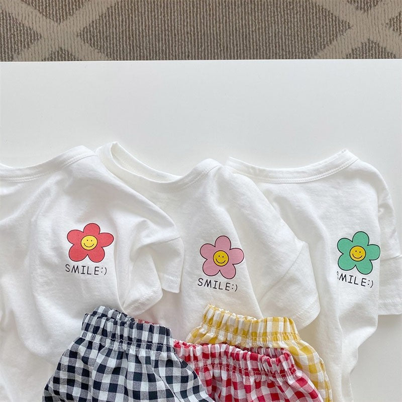 The short-sleeve T-shirt features a fun, floral pattern that adds a touch of charm and style to your child’s summer wardrobe. The O-neck collar and soft cotton material ensure that your little one stays comfortable and cool while looking adorable.
