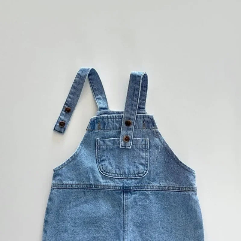 These overalls feature functional pockets, allowing your child to store little treasures or simply enjoy the added convenience. Whether it’s for carrying small toys or just for style, the pockets enhance the practicality and charm of these denim overalls.