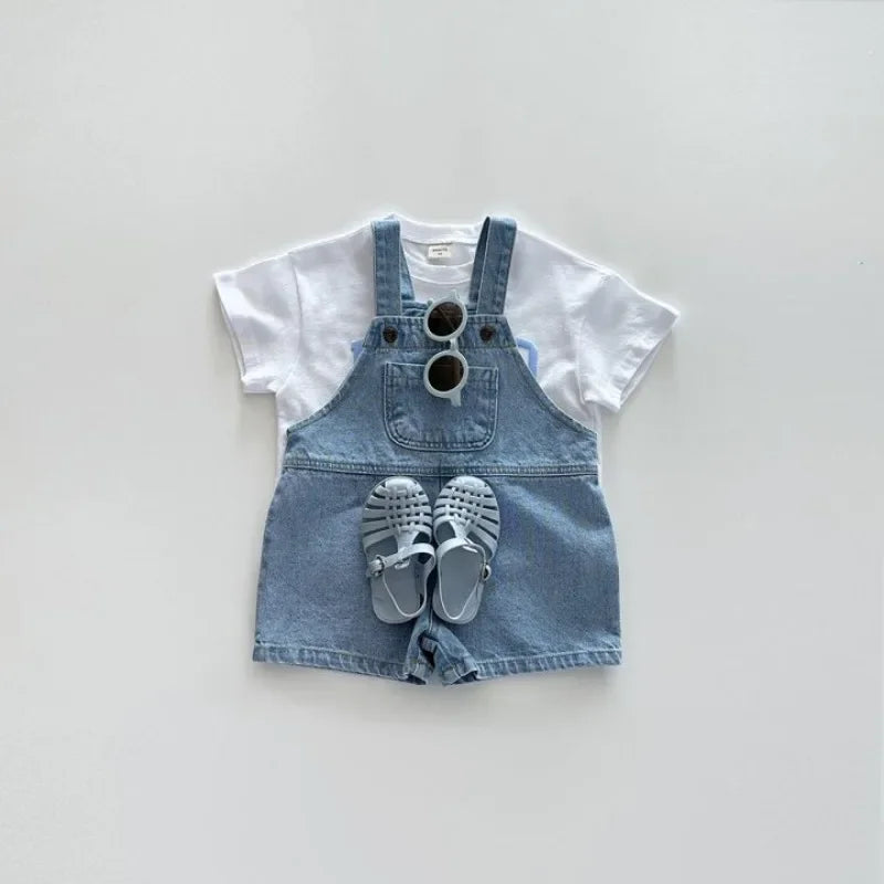 Dress your little one in these adorable Summer Denim Jumper Overalls, designed to offer the perfect combination of comfort and style. Crafted with a blend of cotton and polyester, these solid color denim overalls are perfect for toddlers and young children. The versatile design and pocket details make them a must-have addition to your child’s summer wardrobe.