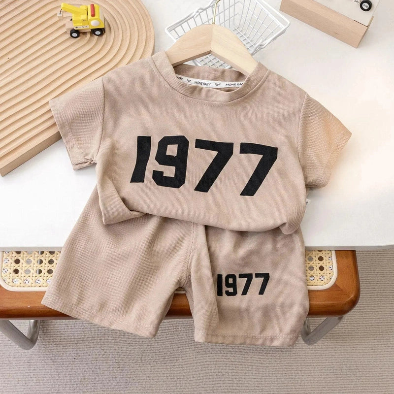 This two-piece summer set includes a comfy short-sleeve T-shirt and matching shorts, making it a must-have for your child's warm weather wardrobe. The "1977" design adds a fashionable touch, while the high-quality polyester fabric ensures comfort for all-day play. Ideal for boys and girls aged 9 months to 4 years, this set is designed for active toddlers who love to look stylish.