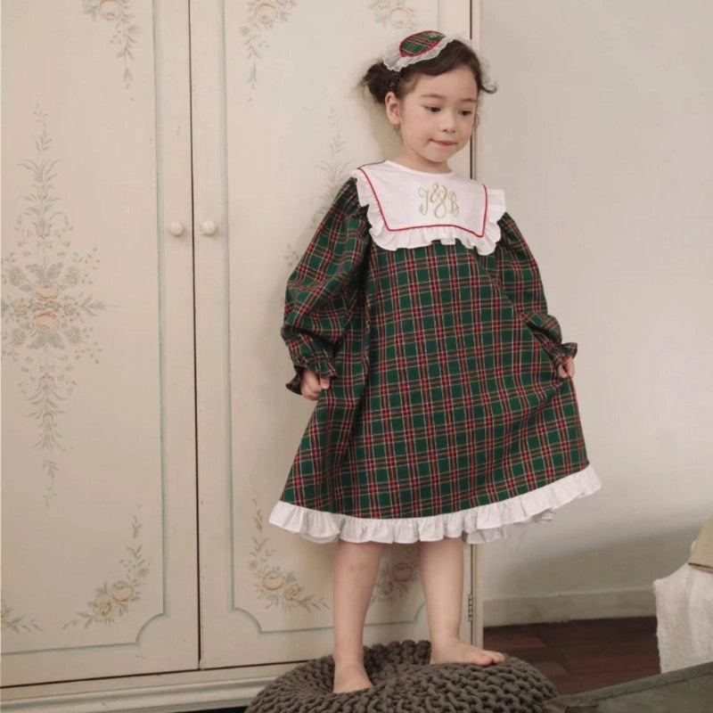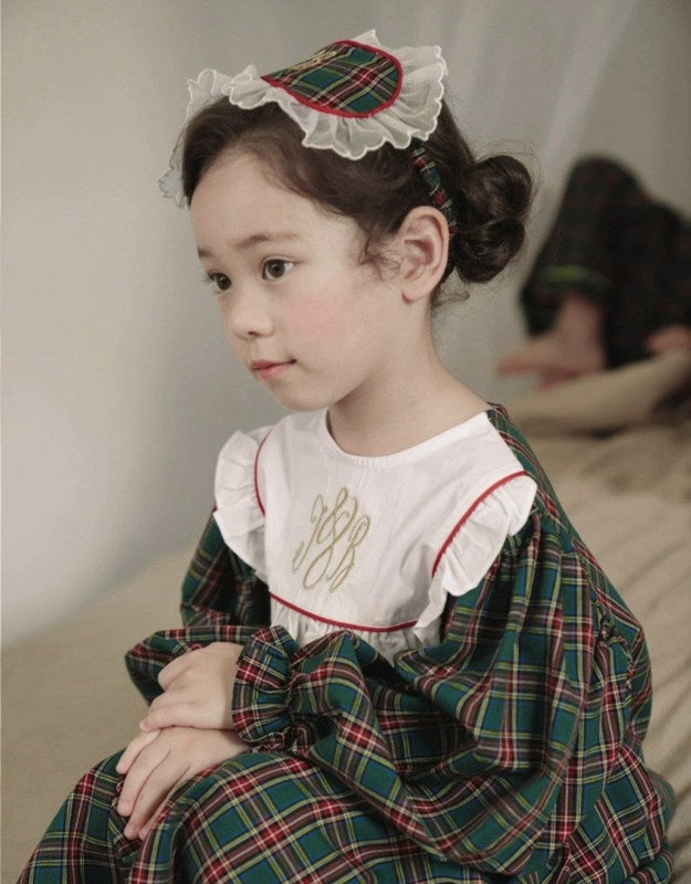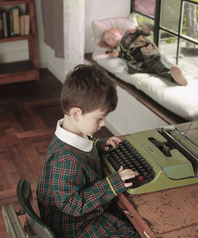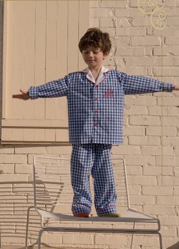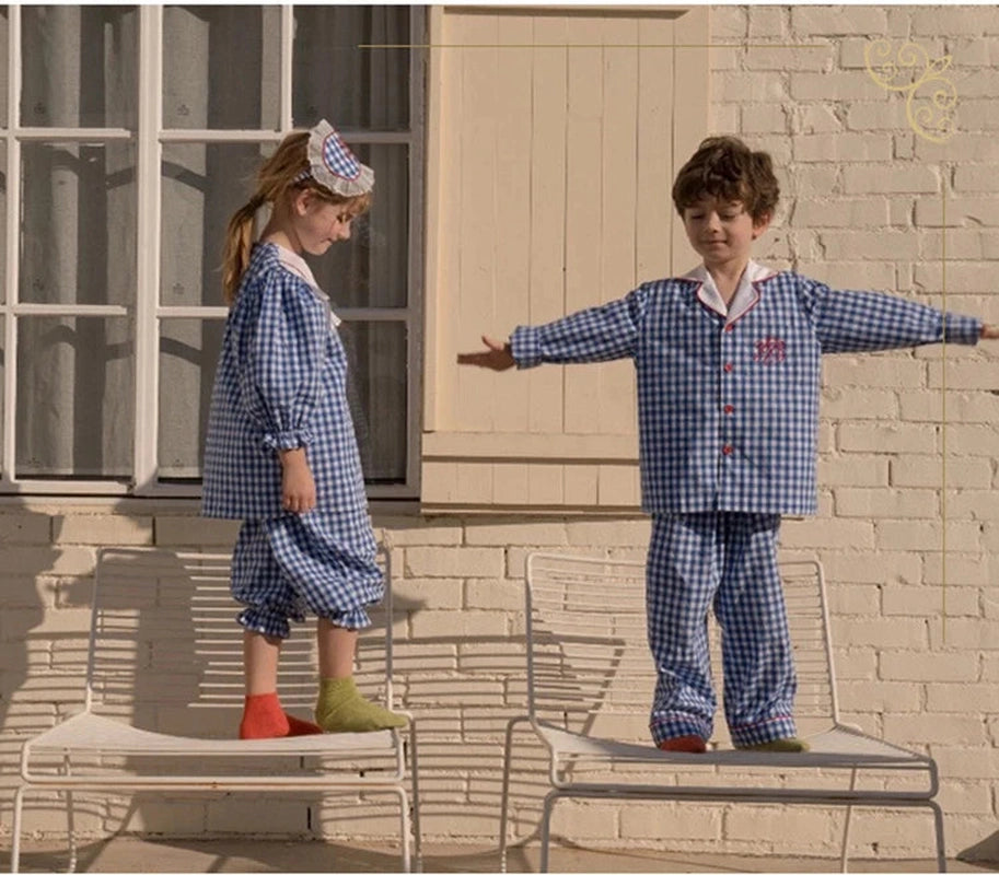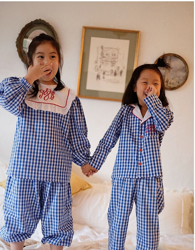 The embroidered letters add a playful yet refined detail to this pajama set, making it stand out from ordinary sleepwear. Combined with the plaid design, it exudes a vintage charm that’s perfect for stylish little ones.