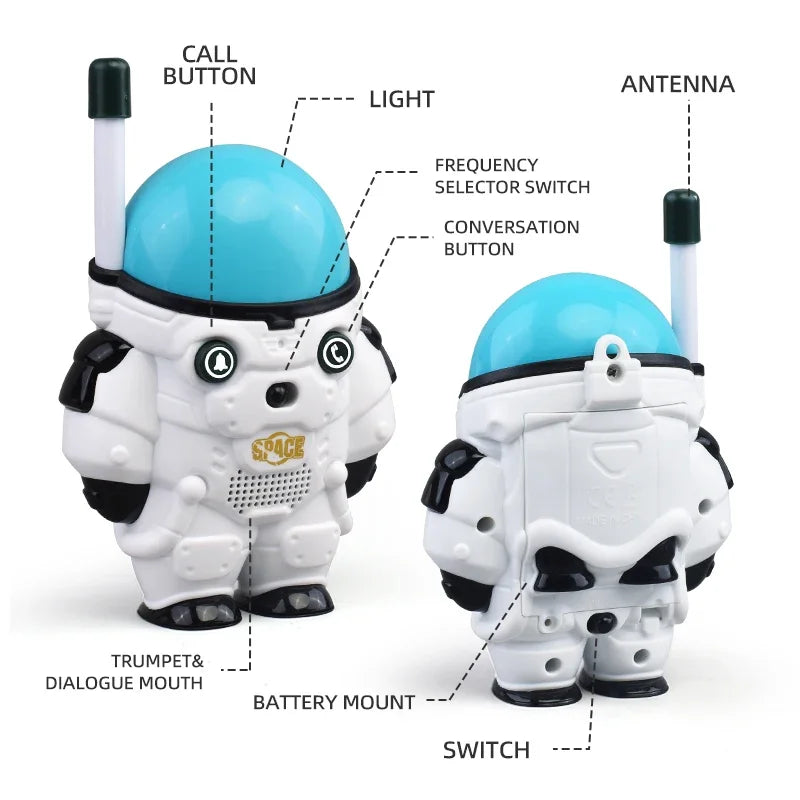 The Walkie Talkie Astronaut Mini is built for long-distance communication, with an impressive range of up to 1000 meters. Whether your child is adventuring in the backyard or on a hiking trail, they can stay in touch with friends or family, even when separated by large distances.